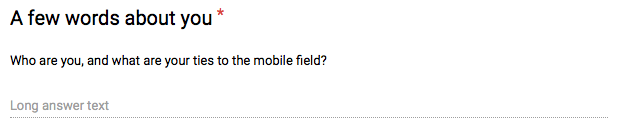 I hope these few notes helps you shape your own call for papers. Mobile Era will be opening up for talk submissions in just a few weeks for next year's edition and we will put our experiences to use in making this year's conference even better!